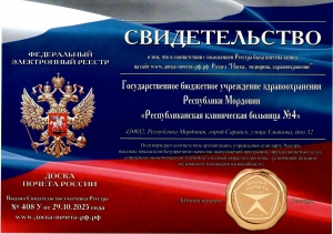 ![]() ГБУЗ РМ "Республиканская клиническая больница №4" внесена в Федеральный электронный реестр "Доска почета России" 12.11.2025